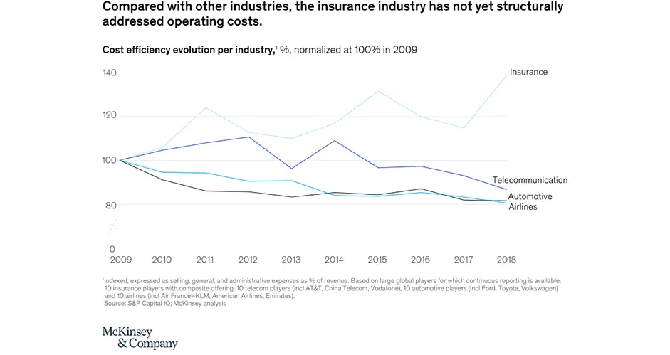 Most of the claims management process is paper-based, and it rarely receives end-to-end digitization. As a result, it can consume up to 80% of premium income. The manual nature of claims processing also leads to errors and inefficiencies, which increase insurers’ operating costs. By 2019 larger insurance carriers had not yet adequately addressed the cost of services delivery, as stated by McKinsey at the beginning of 2019.