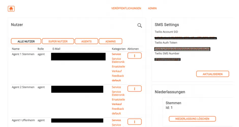 The ROBO-AI Messenger is used as a Web application. Push-notifications are sent for Android devices via browser push notifications, or SMS for IOS-devices. On Wahlers side, it’s used the Webclient on desktop, tablet or mobile. There’s an integration of their own system, “Tech DB”.